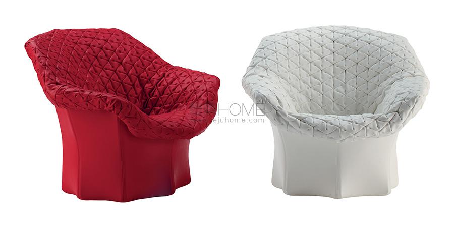 Juliet扶手椅是Poltrona Frau的百年標志,是該公司在百年慶典設計比賽時從來自世界各地的十二名杰出設計師中選出的獲獎作品。通過Juliet,Benjamin Hubert以當代視角重新詮釋經典纓球包墊,柔軟、自由、內部增添原創縮褶縫線,好似女士緊身背心和袖子的蕾絲與散褶,以多面圖案為表面帶來靈動。Juliet扶手椅源自傳統木框架,底座更窄,座椅處呈泡芙狀散開。褶皺和縫線之間的自由組合所塑造的豐富表面覆層帶來放松和縱情之感。