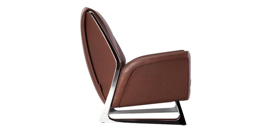 Luft扶手椅讓人想起空氣、云彩和自由飛翔的鳥兒。Walter Maria de Silva在設計時考慮流體設計,好似懸浮在空中,同時沒有遺忘人體力學和舒適。扶手和座椅交織呈一條理想的線條,具有典雅的曲線,好似海鷗的翅膀。支腳跟隨側面向外打開,強調了和諧的形狀節奏。Luft大方包容身體,體現即刻放松的概念。憑借填充鵝絨的選配靠腰,極致擴大舒適效果。