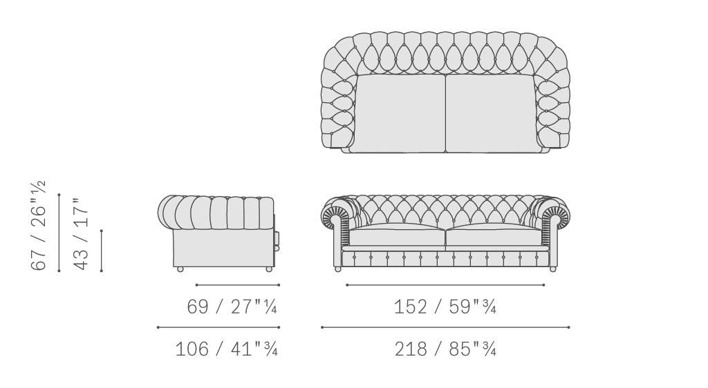 Chester現已推出Chester One:一個更加豐富的產品系列,包括四座和五座新座墊以及圓沙發凳,比例經過重新設計。事實上,座墊比之前加深了15厘米,更加舒適,同時具有當代典雅,與時俱進。但是,Chester One沙發保留了Renzo Frau設計的歷史款式的特色:著名的纓球包墊加工、回旋扶手、系列小釘,另Pelle Frau?軟皮覆面更加精致。