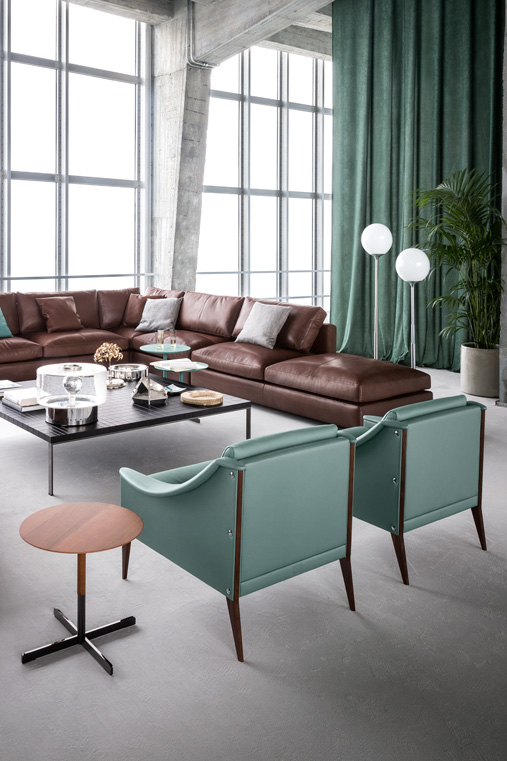 Dezza扶手椅設(shè)計(jì)于1965年,結(jié)合了Gio Ponti的多個(gè)重要設(shè)計(jì)理念,從外形角度,椅腿使用略呈楔形 的三角形特色截面,從方法學(xué)角度,通過(guò)有限的可組裝部件獲得革命性“系統(tǒng)式”裝配性。Dezza沙發(fā) 和扶手椅舒適、方便、輕盈、易于搭配,精心制作的再版彰顯其形式美感和風(fēng)格獨(dú)特性。