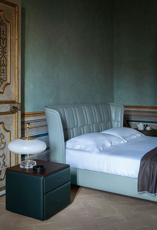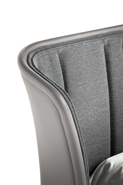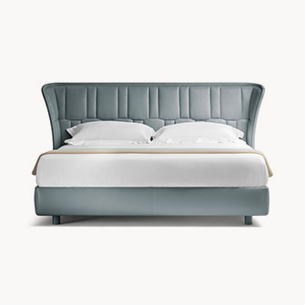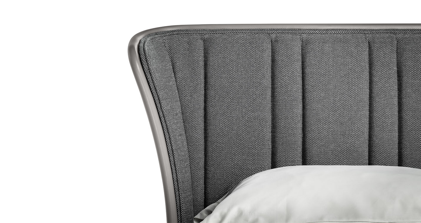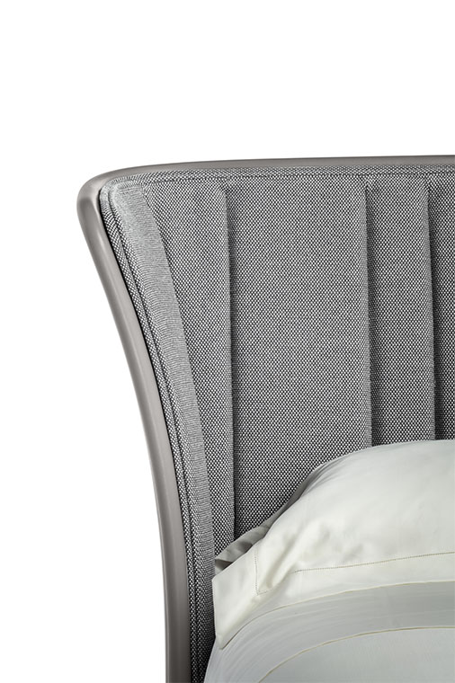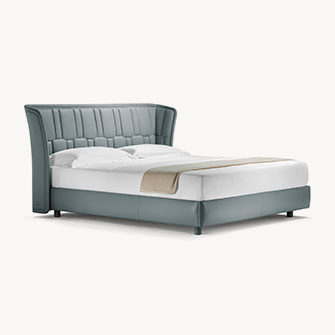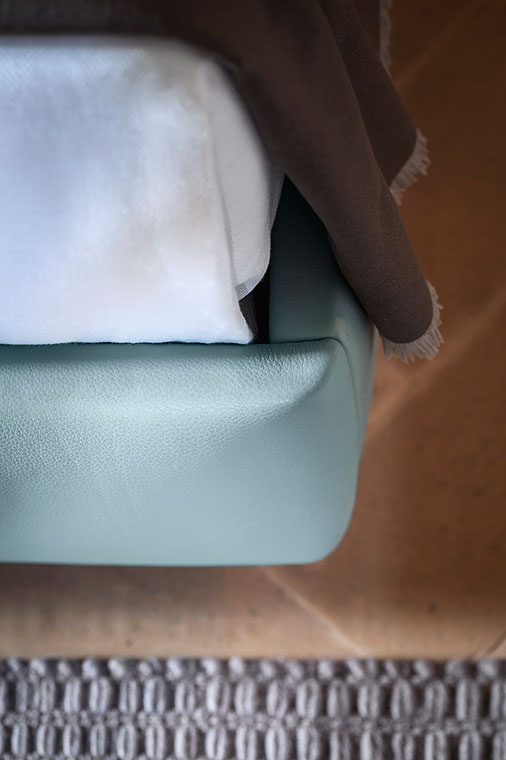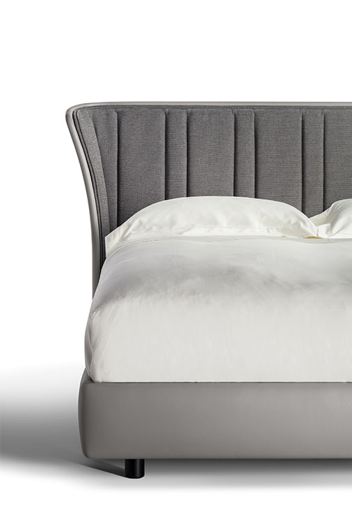 Lola Darling床首先映入人們眼簾的是其柔軟而寬大的線條。厚重的床頭采用科技和手工技術(shù)塑形,雅致的側(cè)面收合。在Lola Darling中,Roberto Lazzeroni以現(xiàn)代視角詮釋Poltrona Frau的經(jīng)典纓球包墊。增加輕盈感和現(xiàn)代感的同時,絲毫沒有減少其立體感。精湛的皮革加工替代傳統(tǒng)包扣,描繪出微微凸起的纖細(xì)菱形針腳圖案。整體優(yōu)雅體現(xiàn)在每個細(xì)節(jié)上,首先是周邊滾邊,使用同色深淺Pelle Frau?皮革,完全包圍床頭和床框內(nèi)外邊緣。床頭結(jié)構(gòu)使用櫸木實木和樺木復(fù)合板。兩側(cè)部分經(jīng)過塑形,使用印壓成型聚氨酯泡沫制作。 內(nèi)部填充聚氨酯泡沫和聚酯棉。Lola Darling床表面完全覆蓋Pelle Frau?皮革。圓柱形鋁制支腳提供黑色噴漆款式,或覆蓋Pelle Frau?皮革,與床表面相搭配。