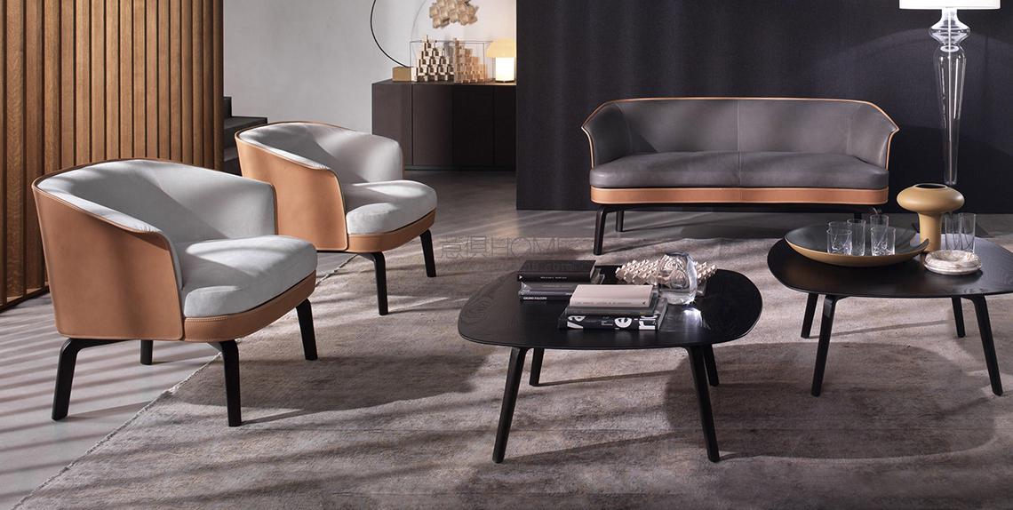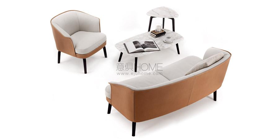 靠背主體采用印壓聚氨酯泡沫,略微填充聚氨酯泡沫和聚酯棉。座墊采用陳年櫸木,填充聚氨酯泡沫和壓制毛氈,彈簧系統(tǒng)使用松緊帶。座椅靠墊填充鵝絨,配有聚氨酯泡沫穩(wěn)定嵌塊,在減少凹陷的同時保持舒適度。四個支腳使用雞翅木色白蠟實木或摩卡色白蠟實木。Nivola沙發(fā)和扶手椅主體外部覆蓋皮革或Pelle Frau?軟皮,內(nèi)部覆蓋Pelle Frau?軟皮或布藝,并添加珍貴的對比色明線。