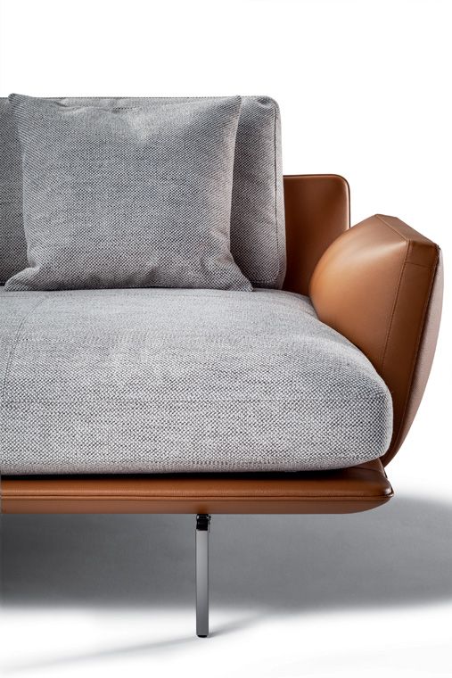 Get Back表面看來休閑肆意,卻隱藏著對細節(jié)的絕對關注。座板和靠背匯聚成一個極為輕盈的元素,周圍一圈極細滾邊,好似鉛筆痕跡,包圍整個輪廓。圓角令表面更具吸引力,皮革扶手裝飾珍貴縫線細節(jié),從側面環(huán)抱座板,強調柔軟形狀。