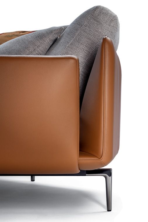 座板和靠背軟墊采用松軟的羽絨包墊,與結構雕刻般的表面形成有趣對比,彰顯Poltrona Frau的皮革加工技藝。