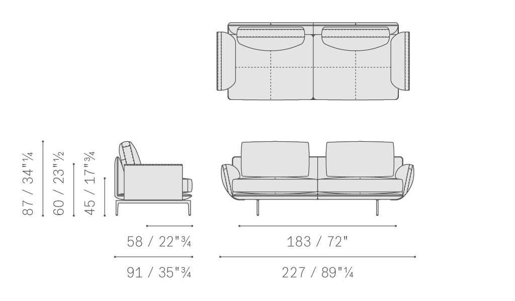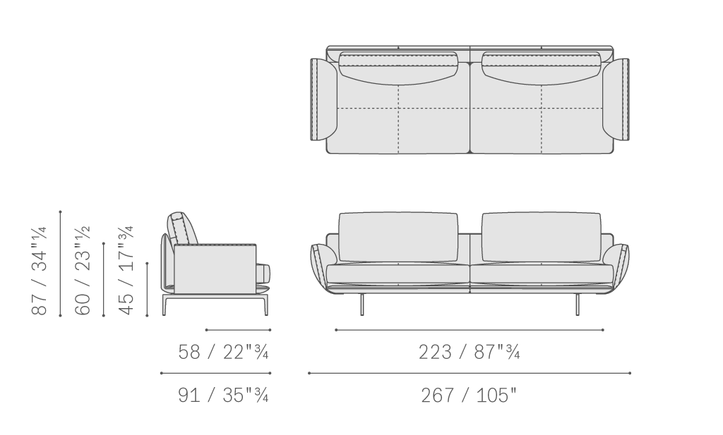 基座和靠背包墊為聚氨酯泡沫,扶手中則填充聚氨酯和聚酯棉。座板彈簧結構采用編織松緊帶。坐墊填充羽絨,有聚氨酯泡沫穩(wěn)定內芯??勘耻泬|內部分為多個區(qū)域,填充羽絨。鋁鑄支腳采用釕表面處理,配有黑色尼龍?zhí)兹?。Get Back可以整體覆蓋Pelle Frau?皮革,或將Pelle Frau?皮革與座板和靠背的布藝軟墊相結合。