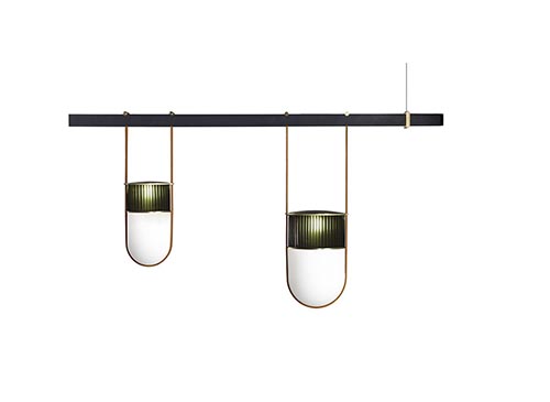 在吊燈版本中,提供單個或多個燈泡的多種組合,Xi燈具可以安裝在高度可調的橫桿上,提供兩種長度,130cm和180cm,采用啞光槍管色表面處理,電纜線為黑色。吊桿采用軌道式結構,允許水平移動燈具,并可將其固定在所需位置上。