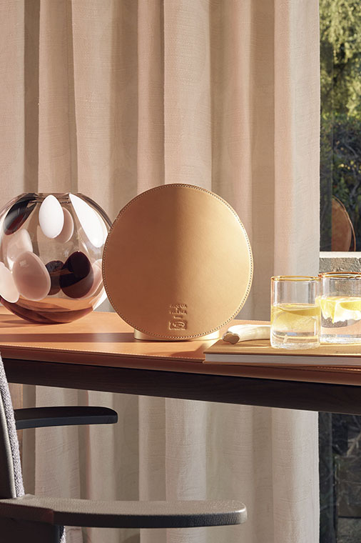 Airound?自動(dòng)香氛器由二人組合GamFratesi設(shè)計(jì),由兩個(gè)元素組成:主體,從中擴(kuò)散香氣;圓形香氛罩,採(cǎi)用精美的PelleFrau?軟皮製作,有四種不同的顏色以及Cuoio Saddle Extra皮革版本可選。設(shè)計(jì)線條極為流暢,由兩塊軟皮或皮革圓盤(pán)組成,帶有對(duì)比色縫線和同色系染色邊緣。一個(gè)半柔性塑膠材質(zhì)的支撐,用以確保穩(wěn)定性。