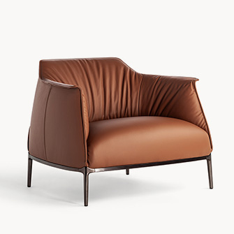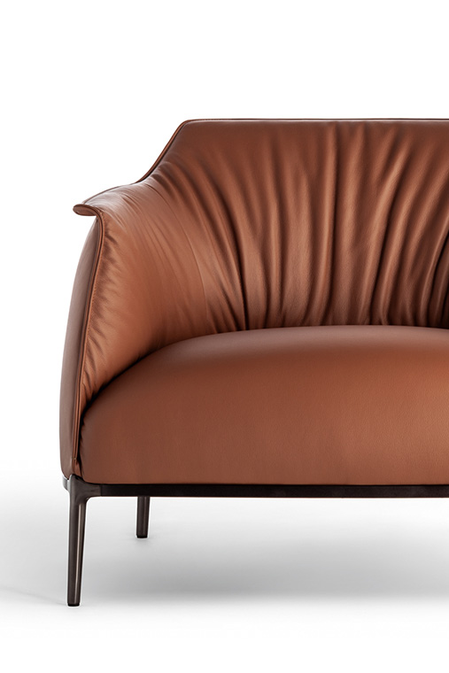 繼推出包含三個不容錯過版本的Archibald以及Archibald Gran Comfort 之后,現由Jean-Marie Massaud設計的經典扶手椅的全新版本Archibald Large誕生了。形狀與實質的完美結合:如今,Archibald更加舒適包容的設計愈顯溫馨,令人進入沉思和放鬆。座墊增加了寬度和深度,與纖細的座腳間找到平衡,為整體帶來靈動的效果和極致舒適感。在Archibald 扶手椅中,包覆的皮面縱向摺痕呈現出宜人律動,沿著覆層邊緣和外表面點綴對比色縫線,帶來一絲細膩典雅??勘澈妥谓Y構採用鋼製,包墊使用印壓成型聚氨酯發泡和塑形發泡,需要額外舒適感的部位填充聚酯棉。彈簧結構使用鬆緊帶。底座由四個鑄鋁座腳構成,鋼管框架採用炮銅色表面處理。Archibald扶手椅包覆Pelle Frau?軟皮。