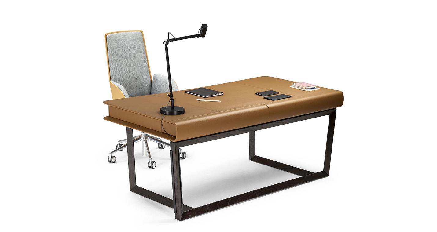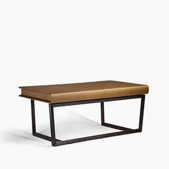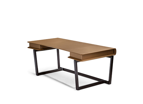 Peek-a-Book寫(xiě)字臺(tái)由一塊非常簡(jiǎn)單的楊木膠合板薄板組成,覆蓋PelleFrau?軟皮,彎曲并折疊為兩部分,形成底板和寫(xiě)字板,并在中間加入了兩個(gè)抽屜。呈現(xiàn)出皮革裝訂的珍貴書(shū)籍般的視覺(jué)效果,象徵著這款傢俱的功能:辦公桌是專門(mén)用來(lái)產(chǎn)生和收集創(chuàng)意、思想和記憶的地方;是學(xué)習(xí)或工作的人最親密和最私人的部分。