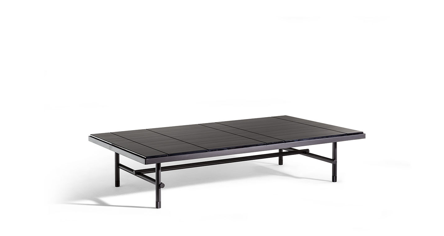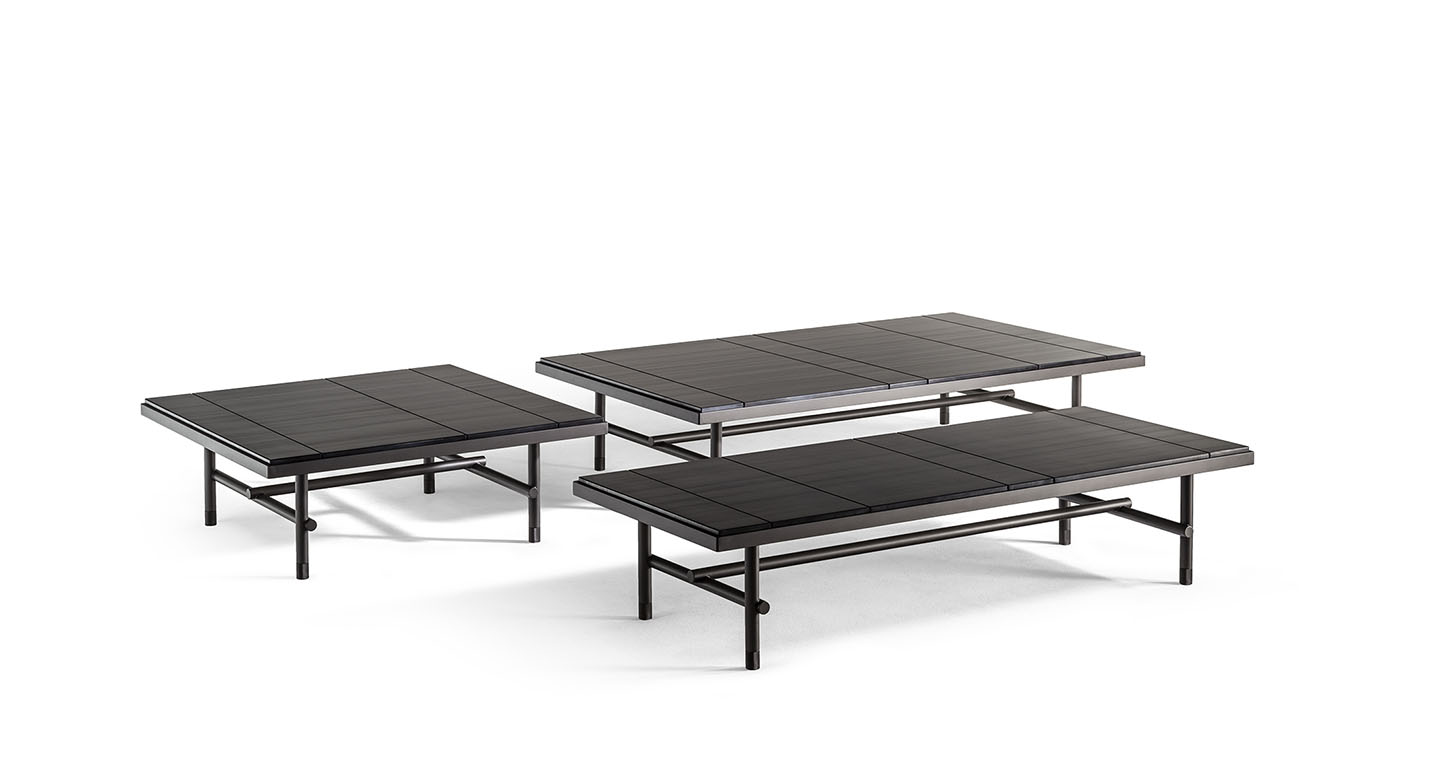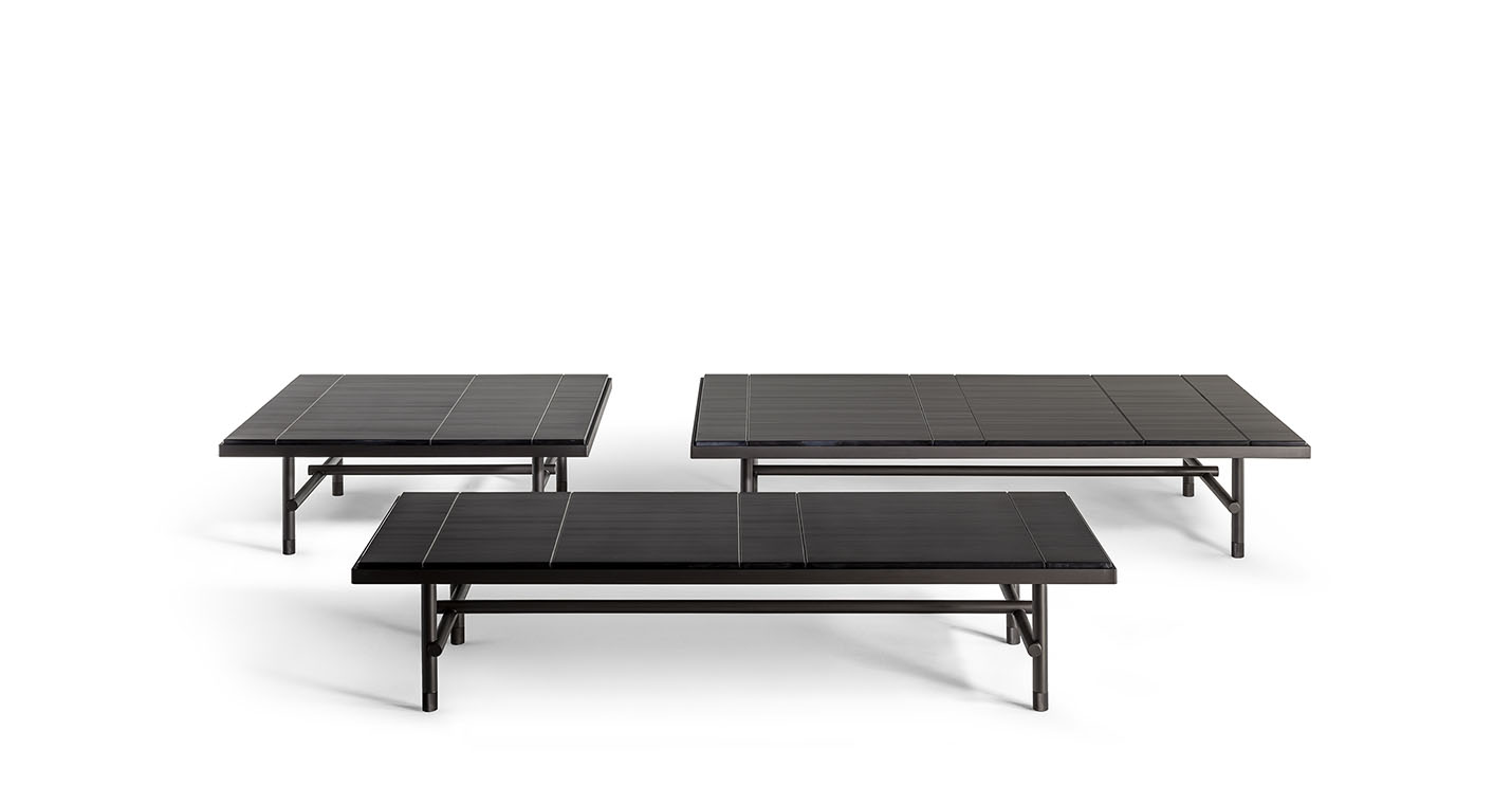 Jean-Marie Massaud在設(shè)計(jì)Pierre咖啡桌時(shí),對(duì)材質(zhì)傾注了大量的工作,探索大理石的最大表現(xiàn)潛力,以前所未有的方式對(duì)其進(jìn)行了重新詮釋。在為Poltrona Frau設(shè)計(jì)的三款Pierre咖啡桌中,檯面表面實(shí)際上是由被切割成不同寬度的Nero Pagoda(帕格達(dá)黑色)大理石條塊組成,條塊經(jīng)過(guò)排列,使大理石的天然紋理變成與檯面長(zhǎng)邊平行的錯(cuò)落有致的直線。呈現(xiàn)出的效果極具圖案感、現(xiàn)代、非常優(yōu)雅,具有明顯的簡(jiǎn)單性,彰顯材料準(zhǔn)備和拼配方面的精湛技藝。卡拉卡塔金色大理石檯面則為整塊石板,尊重此類大理石的不同特質(zhì)。在這兩個(gè)版本中,均採(cǎi)用簡(jiǎn)潔的鋁質(zhì)框架,最大程度彰顯了未經(jīng)人工處理的表面或石材厚度的美感。