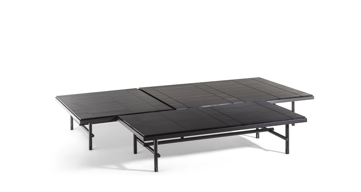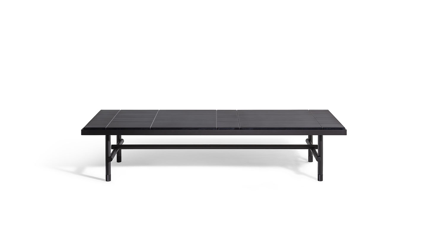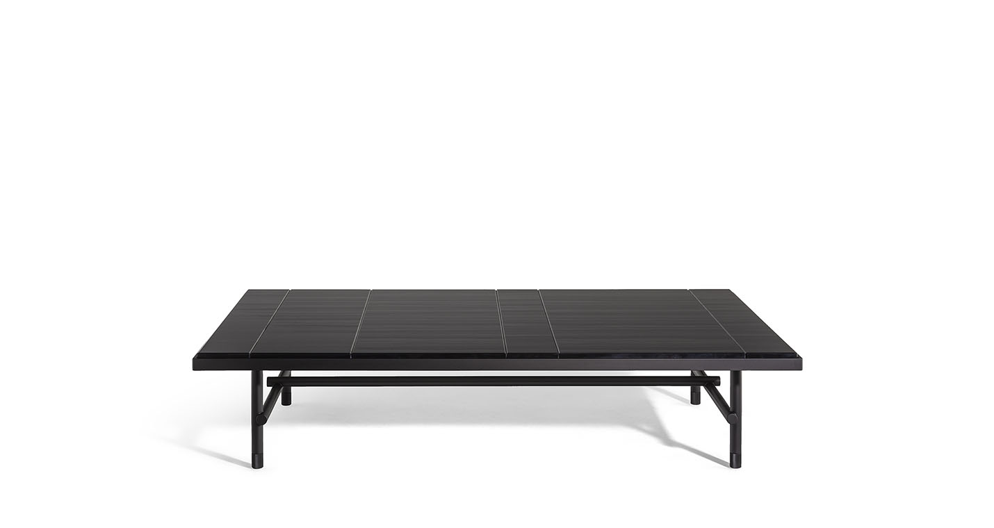 Jean-Marie Massaud在設(shè)計(jì)Pierre咖啡桌時(shí),對(duì)材質(zhì)傾注了大量的工作,探索大理石的最大表現(xiàn)潛力,以前所未有的方式對(duì)其進(jìn)行了重新詮釋。在為Poltrona Frau設(shè)計(jì)的三款Pierre咖啡桌中,檯面表面實(shí)際上是由被切割成不同寬度的Nero Pagoda(帕格達(dá)黑色)大理石條塊組成,條塊經(jīng)過(guò)排列,使大理石的天然紋理變成與檯面長(zhǎng)邊平行的錯(cuò)落有致的直線。呈現(xiàn)出的效果極具圖案感、現(xiàn)代、非常優(yōu)雅,具有明顯的簡(jiǎn)單性,彰顯材料準(zhǔn)備和拼配方面的精湛技藝。卡拉卡塔金色大理石檯面則為整塊石板,尊重此類大理石的不同特質(zhì)。在這兩個(gè)版本中,均採(cǎi)用簡(jiǎn)潔的鋁質(zhì)框架,最大程度彰顯了未經(jīng)人工處理的表面或石材厚度的美感。