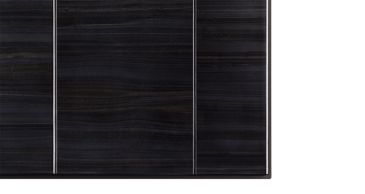 大理石檯面,可以選擇天然拋光表面處理Nero Pagoda(帕格達(dá)黑色)大理石或卡拉卡塔金色大理石。后者可為拋光表面處理,涂有透明聚酯漆,以確保更大表面強(qiáng)度,也可選擇半拋光表面處理,帶來(lái)更為自然的外觀。