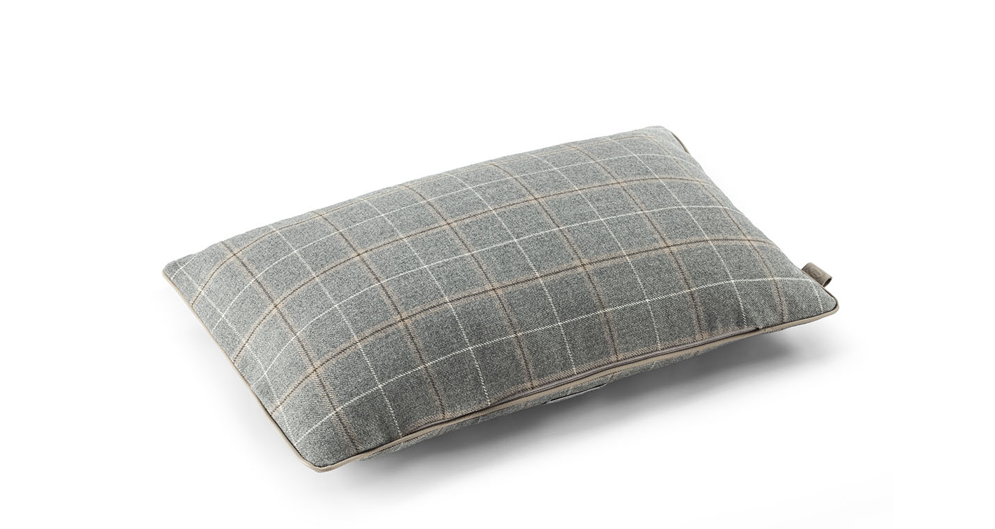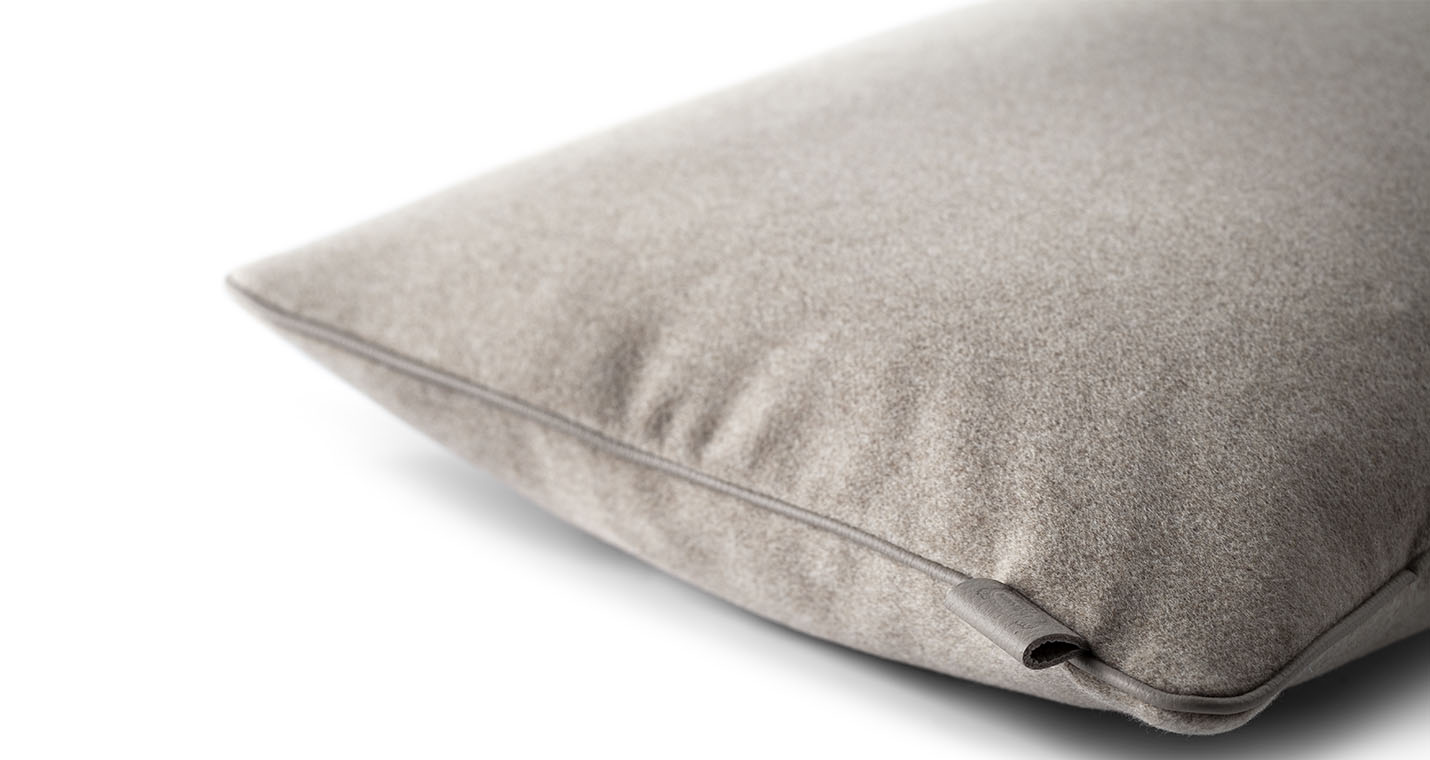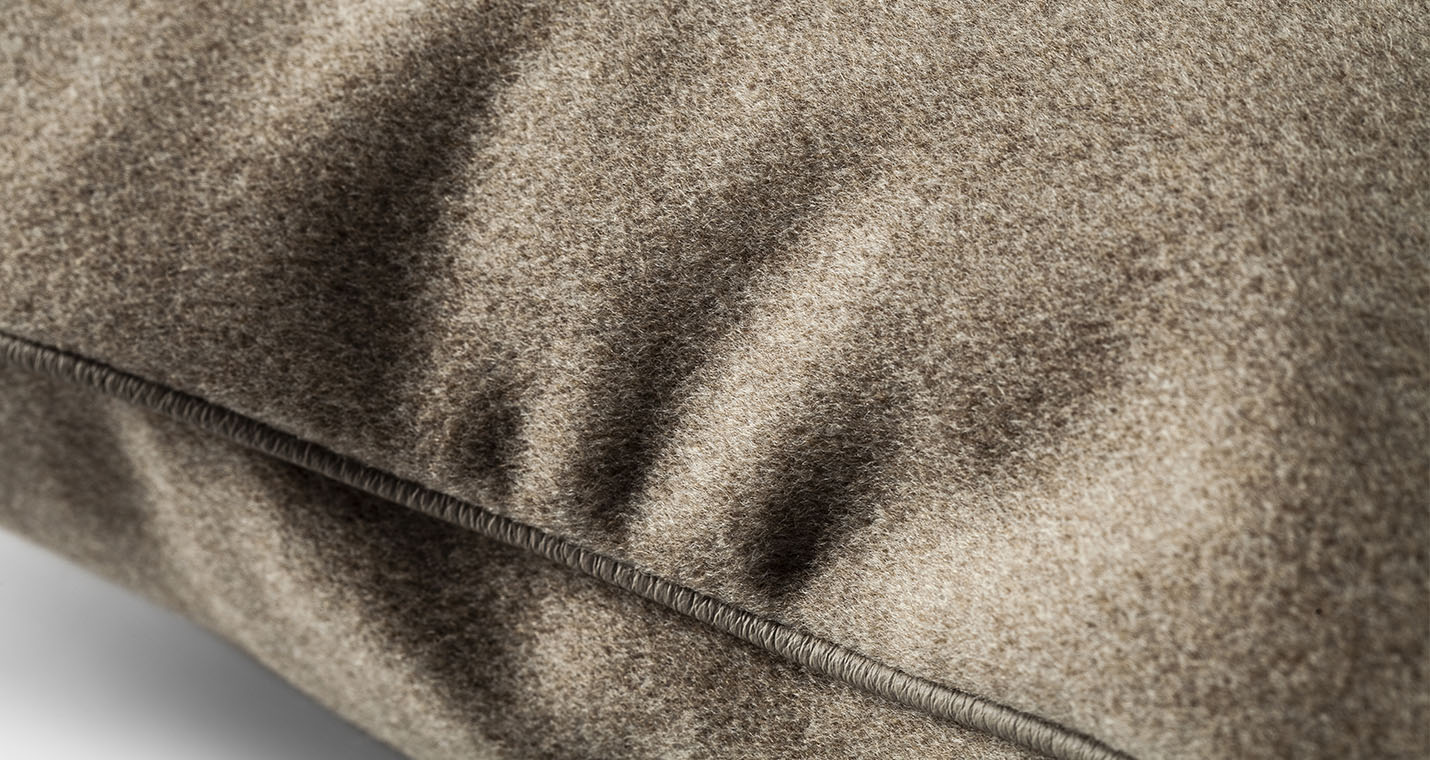 Loro Piana Interiors裝飾軟墊採用Altai和Zelander? Check面料包覆。}Altai是一種羊毛和羊絨的精製混紡面料,將兩種纖維的特性完美融合。一方面,極為細膩的羊絨具有非凡的柔軟性,另一方面,精心挑選的僅產(chǎn)自澳大利亞和紐西蘭的美利奴羊毛,則具有出色的強韌性和保暖性。在經(jīng)典的Check設計中,Zelander?採用優(yōu)質(zhì)紐西蘭美利奴羊毛加工而成,具有出色的光澤和強韌性。其低調(diào)的優(yōu)雅氣息為軟墊賦予豐富的精美感。如同所有羊毛,自然具有阻燃性。