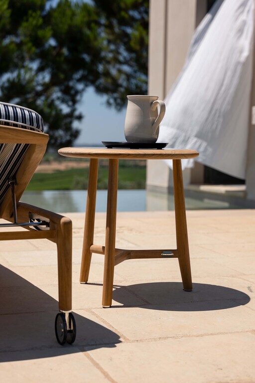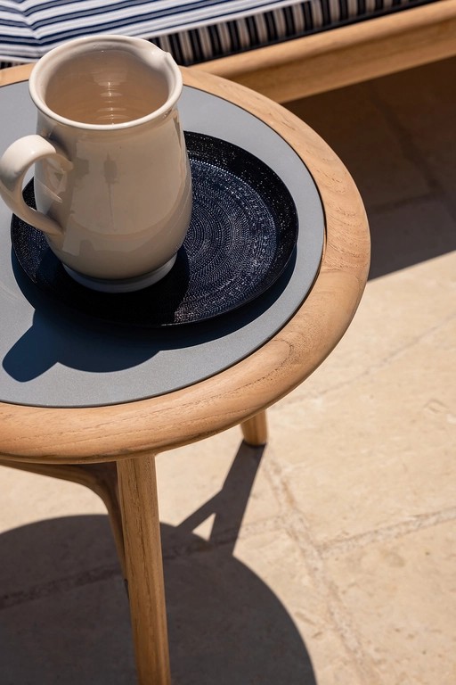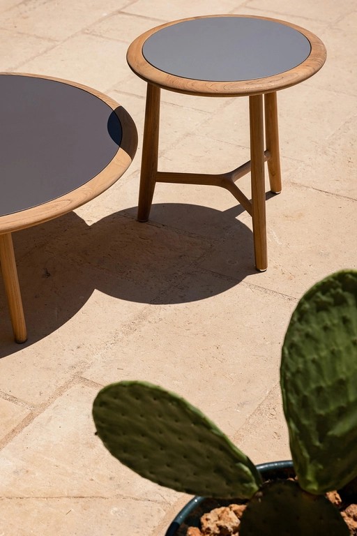 Design with clean-cut lines and materials reminiscent of Mediterranean culture, the outdoor tables are the ideal furnishing accessory to complete outdoor environments such as gardens, terraces, rooftops, verandas and poolside areas, in both residential and contract settings. Made of teak wood with a natural finish, these tables have a hand-finished enamelled stoneware top in four different colours. Available in two sizes and heights. They form part of The Secret Garden, designed by Roberto Lazzeroni, and complete the range offered by Poltrona Frau Boundless Living Outdoor Collections.