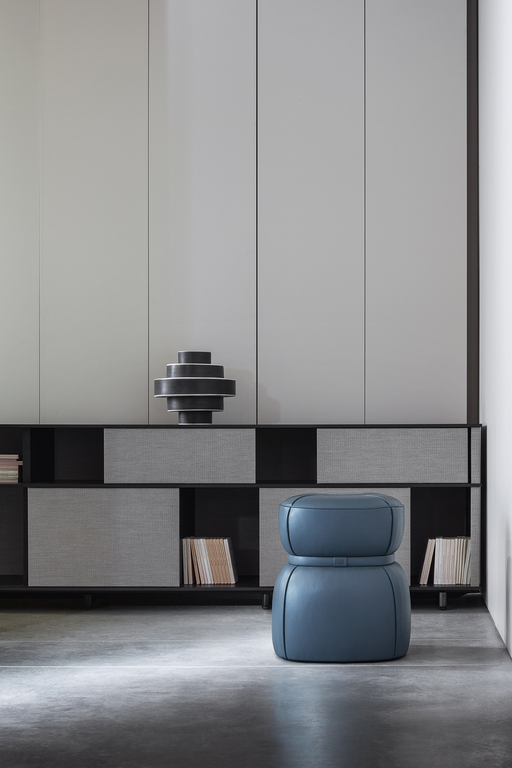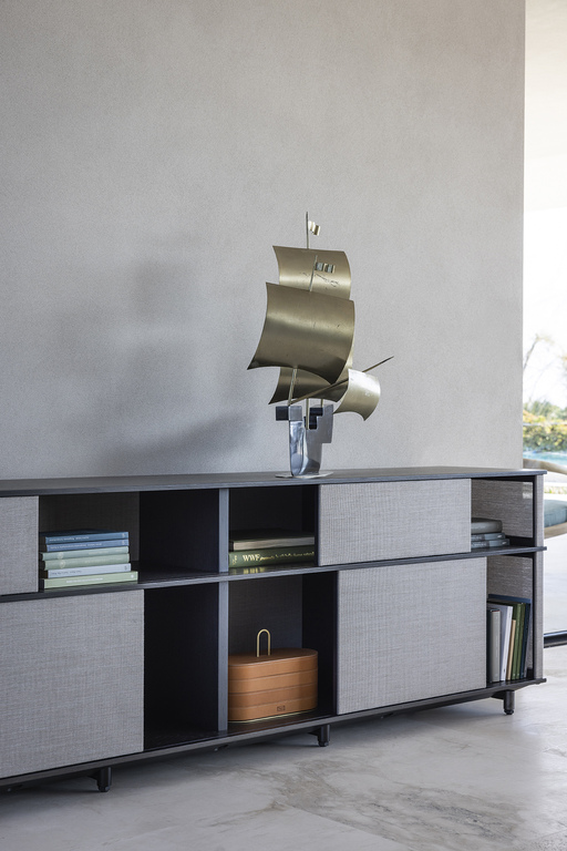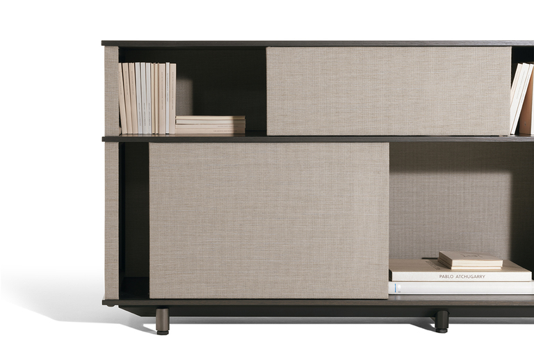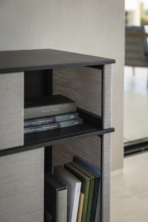In Lloyd Tex, the most advanced technology comes together with traditional materials such as wood, in a delicate balance between different spirits of material. And the interplay of solids and voids becomes even more evident, allowing a glimpse of the content of the freestanding bookcase, without completely revealing it.