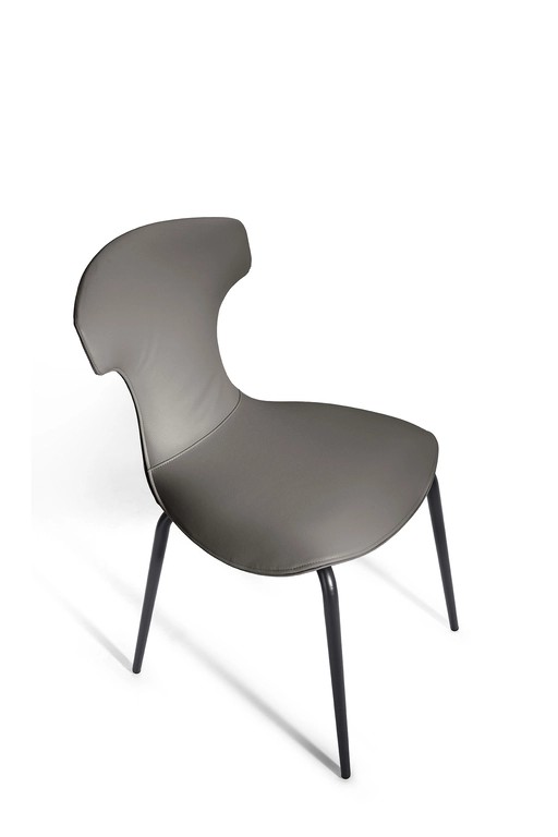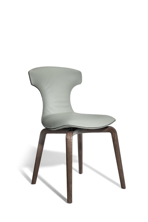 The padded chair can come with a two-tone leather upholstery: one on the outside of the backrest and one on the inside of the seat.