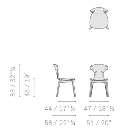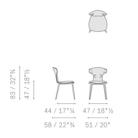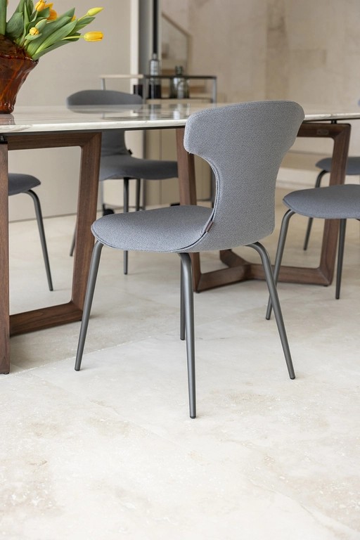 The solid ash wood base typical of the Montera chair joins a four-legged tubular metal base with a conical section that is available in two finishes: burnished or lacquered titanium. Tapered legs make Montera Mas even lighter and more versatile in its uses, from residential spaces to hospitality.