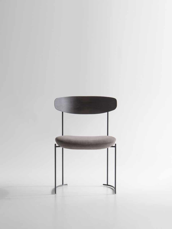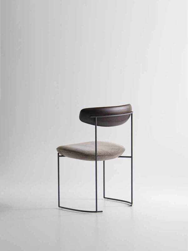 Keel, name recalling the nautical world, represents the attempt to find equilibrium between the linear structure in embossed metal rod and the sinuous and soft lines of the backing elements in solid ash wood, presenting a very particular processing.