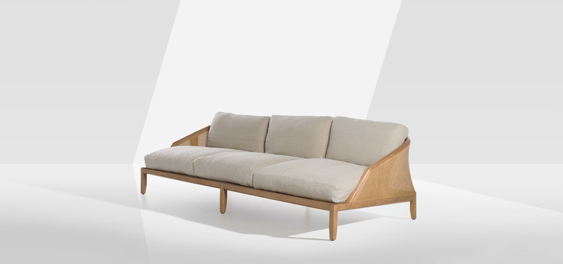 With a solid brushed ash wood structure and a wrap-around cane backrest, the Grace sofa expresses warmth, elegance and craftsmanship.