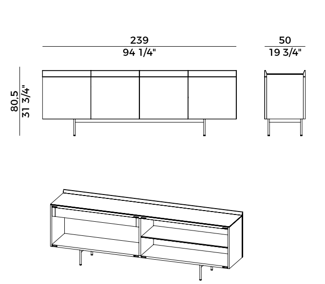 Avant is a family of containers consisting of a sideboard, with legs in two heights, and a cabinet.