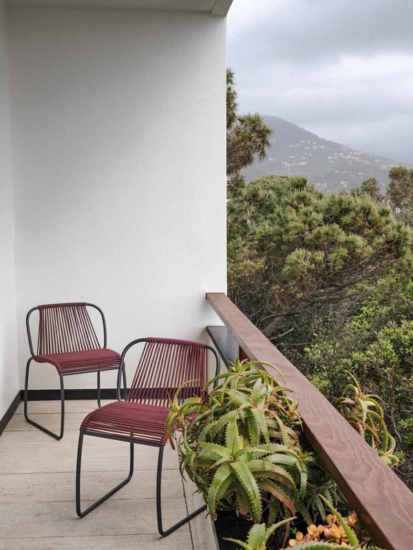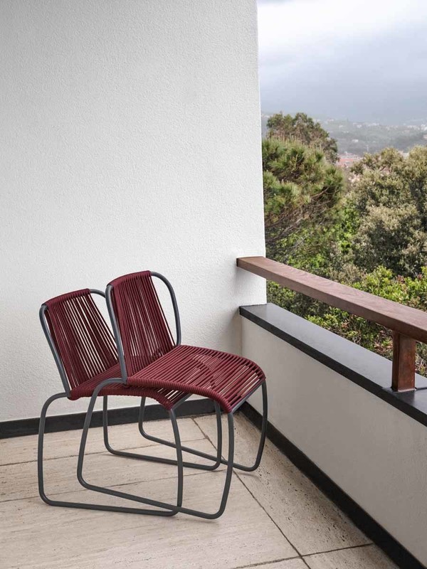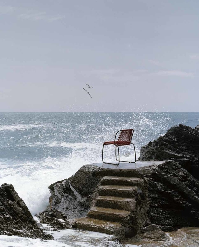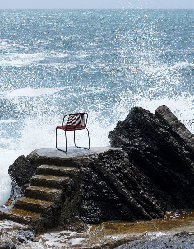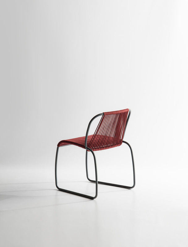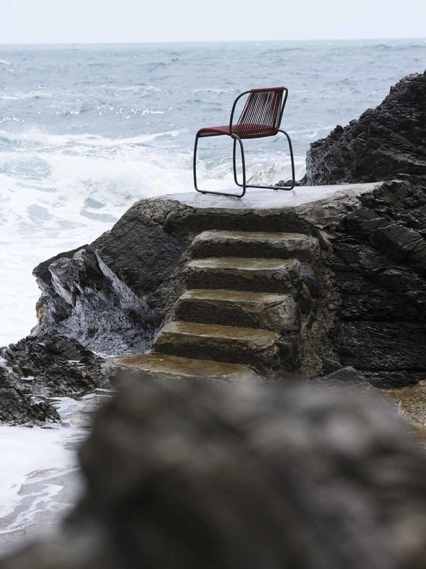 Epoxy powder-coated steel structure with an entirely hand-woven seat.