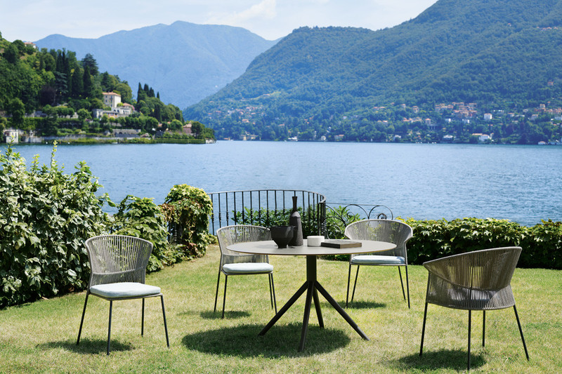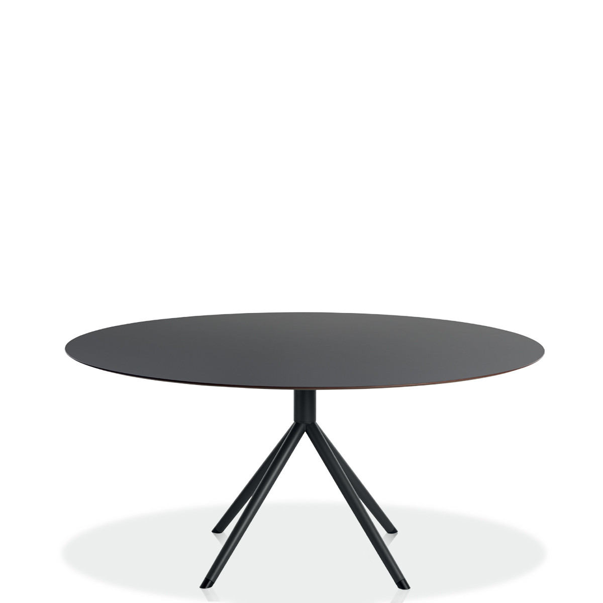 Versatile and with an essential design, the OTX table with central leg and four feet, is declined in the dining version ?128 e ?158cm, with painted metal base and HPL top in the finishes as per collection.