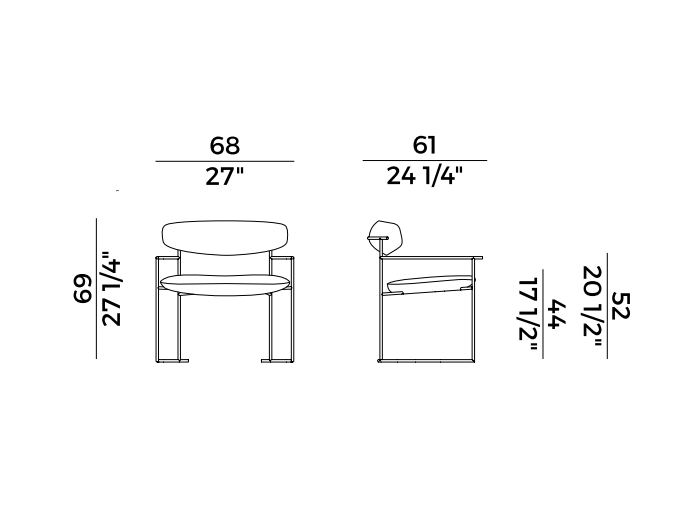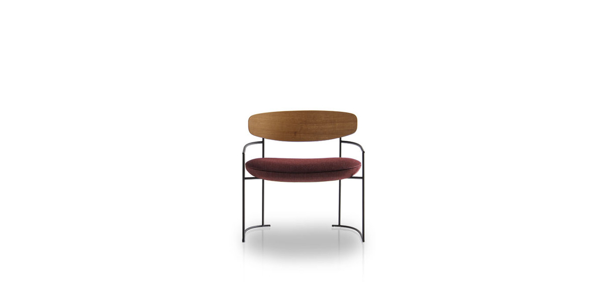 The Keel armchair, part of the homonymous collection consisting of a chair, small armchair and stools, is the result of the research into the relationship between geometric rigor and organic sinuosity.