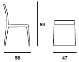 Sedia con struttura in massello di frassino. Interamente rivestita in pelle, ecopelle o tessuto della collezione. Rivestimento in tessuto fisso o sfoderabile.