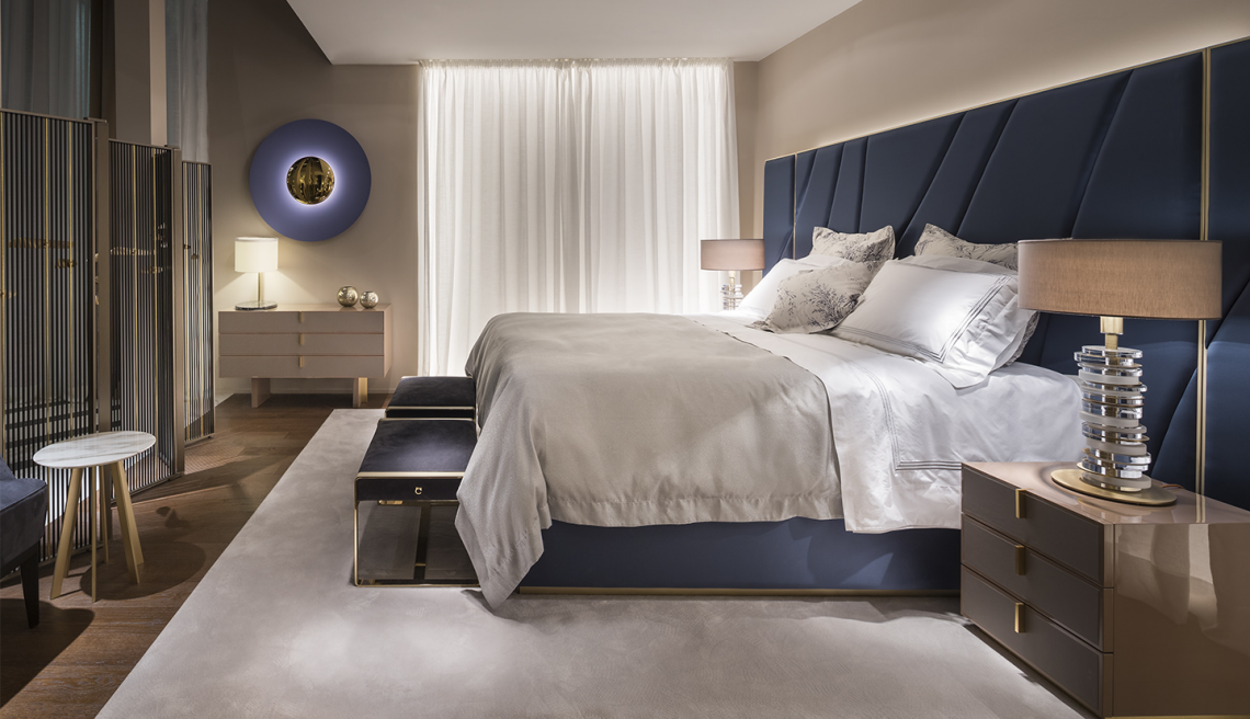 Grazie alla sofistica scelta cromatica del legno con inserti in finitura gold, Odissea Bed può essere inserito sia in ambienti di impronta minimale che in spazi maggiormente estetici e ricchi. La testiera è imbottita e rivestita in pelle, impreziosita da decori scintillanti, che accendono di riflessi ambrati la tua casa.