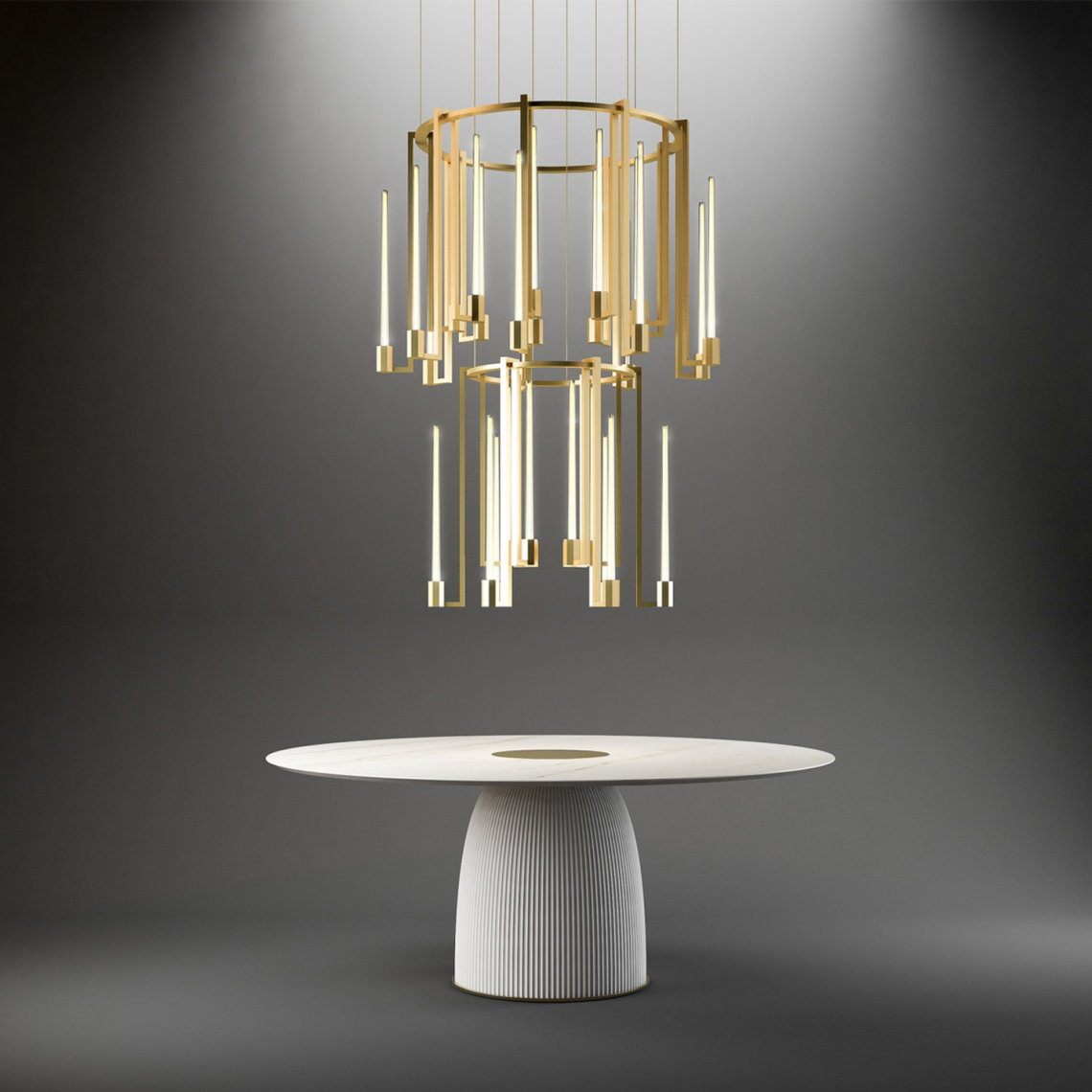 Nella versione a 3 anelli il lampadario king size è perfetto per impreziosire ambienti importanti dalle ampie volumetrie.