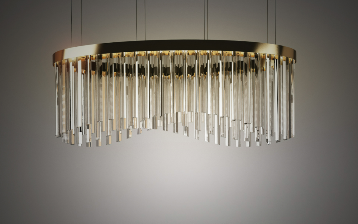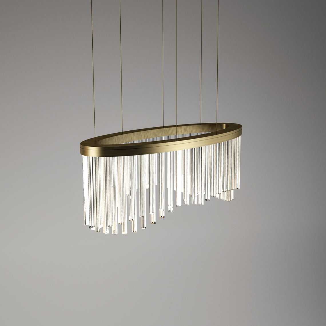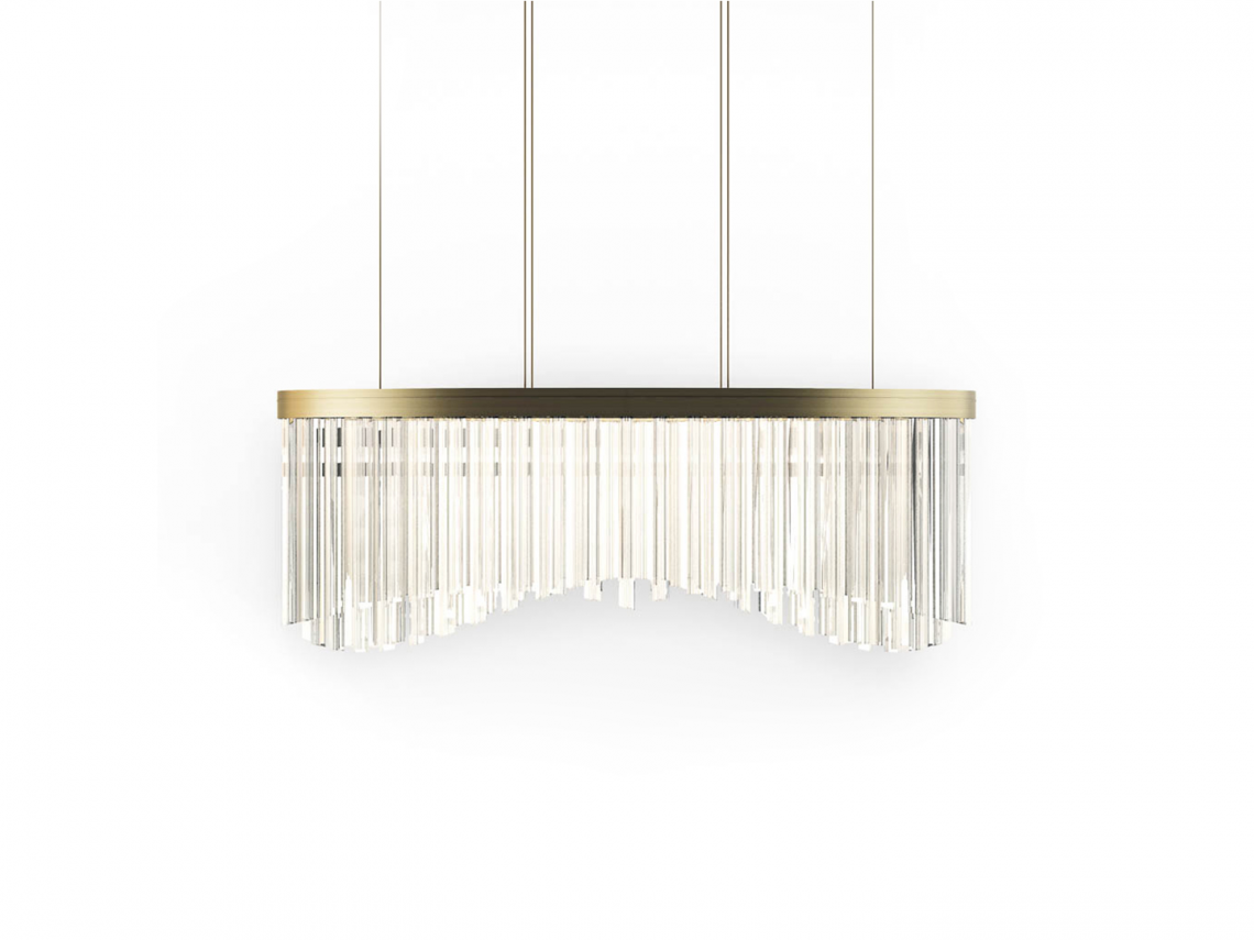 All’interno del perimetro curvi-forme è posizionata una piastra illuminante con struttura in metallo e pannello in policarbonato opalino che diffonde la luce.