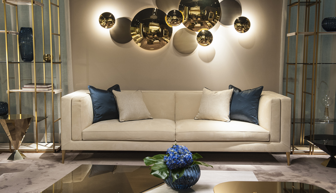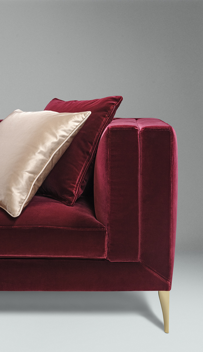 I piedini esaltano la linea e hanno una pregiata finitura oro opaco. Elegance sofa è personalizzabile con pregiati tessuti, raffinati pelli bovine pieno fiore e nabuk. Cuscinatura sedile e schienale sfoderabile.