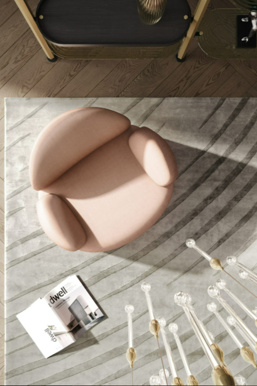 La struttura di Ama è in resistente legno massello e l’imbottitura morbida e leggera ha la fodera in puro cotone. I graziosi piedini leggermente a vista sono in frassino tinto scuro, abbelliscono il design della poltroncina con un tocco affascinante.