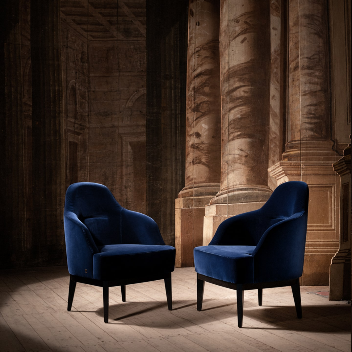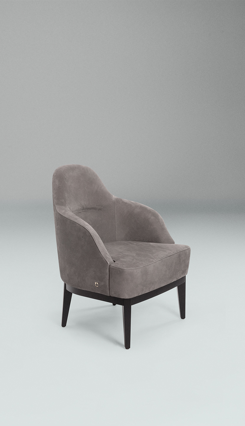 La seduta poggia su una struttura in legno di faggio verniciato nero opaco.