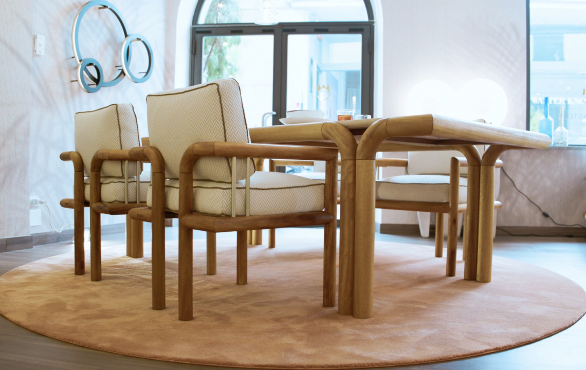 legno massello di Iroko, spazzolato e tinto ad olio naturale