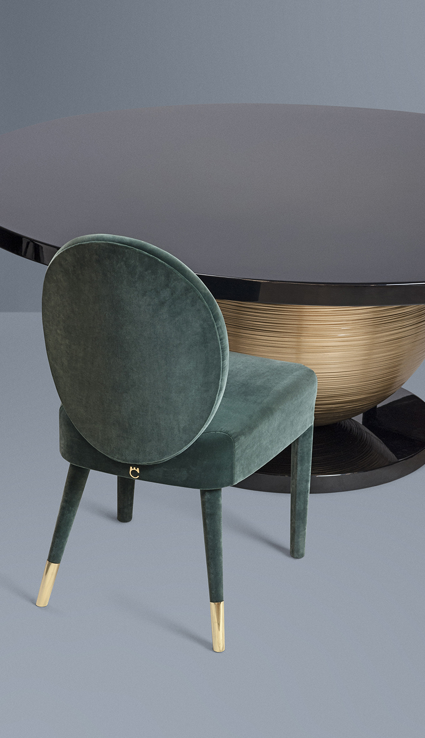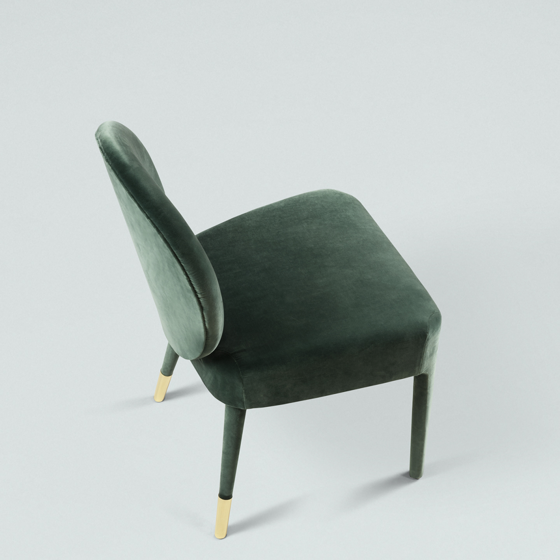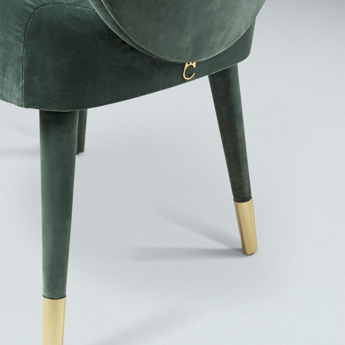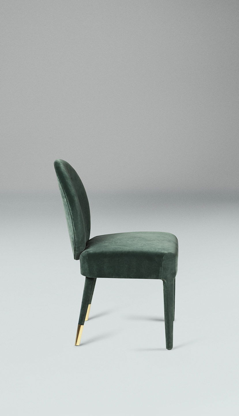 La seduta ha un telaio in legno multistrato curvato e imbottitura in poliuretano espanso sagomato a quote differenziate, mentre le gambe in legno di faggio sono rivestite nel medesimo rivestimento con un prezioso puntale in ottone lucido nelle gambe posteriori. Sofia è interamente rivestita in pregiati velluti non sfoderabili, pelle bovine e nabuk. Sofia è disponibile nel modello con e senza braccioli. Non sfoderabile.