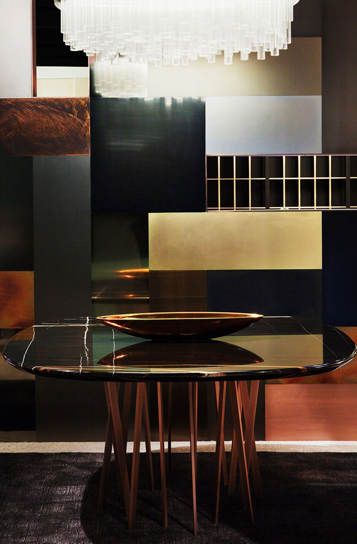 Disponibile anche la versione con piano in vetro retrolaccato col. marrone Ral 8019, spessore piano 1,2 cm.