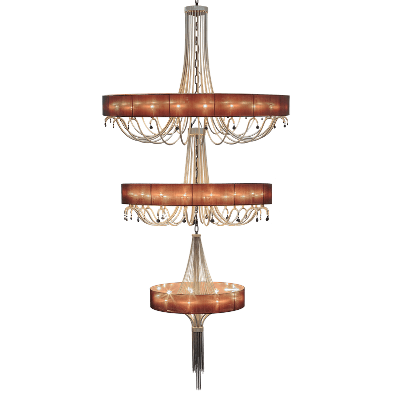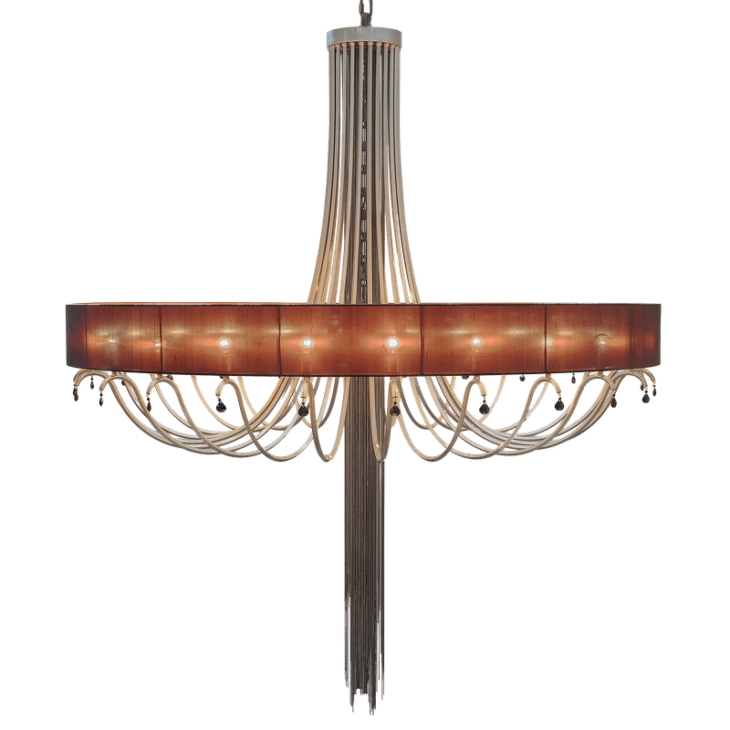 In this collection there is something that reminds of the Far East, its grace, its elegance. Maybe, it could be the big circular lampshades, created in precious fabrics or the bending, ornamental chains, or maybe the pending, charming gems. Strong and delicate at the same time.