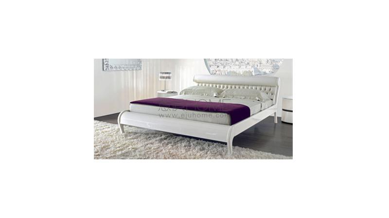 Bed with head and footboards in lathed solid wood, cherrywood or shiny lacquered finish.