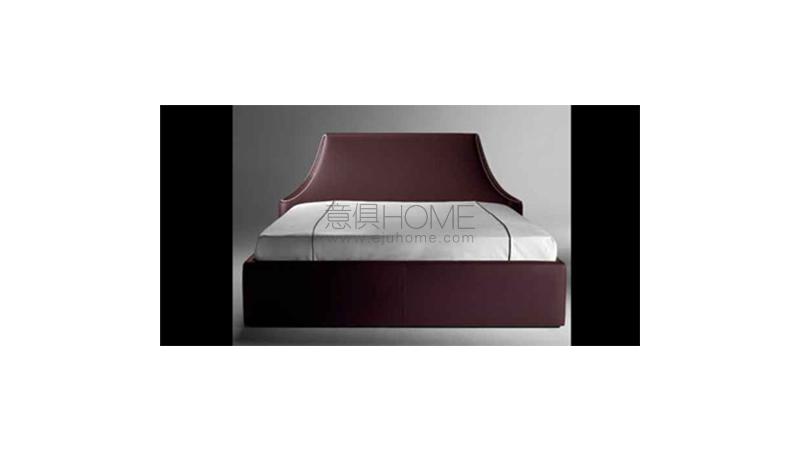 Bed with shaped headboard and bed frame, padded and upholstered with leather.