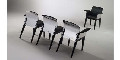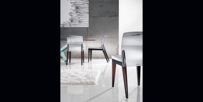 Chair with wooden legs in matt or shiny lacquered finish or in Canaletto walnut. Back in satin titanium, dark titanium, brass or dark brass or in shiny chrome or black-nickel finish. Upholstery available in fabric, velvet or leather. Available with two arms, one single arm right- or left-hand or without arms.