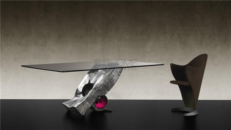 Dining table with base in varnished  forged iron with Murano glass ball in blue, green or red.