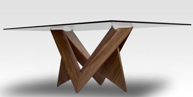 Dining table with base in Canaletto Walnut or in satin brass finish. Transparent glass top 15 mm thick with polished edges.
