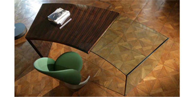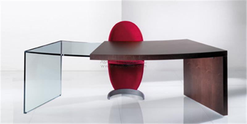Desk with extensible wooden top and glass side 19 mm thick. Finishing: Canaletto walnut, shiny ebony, matt lacquered