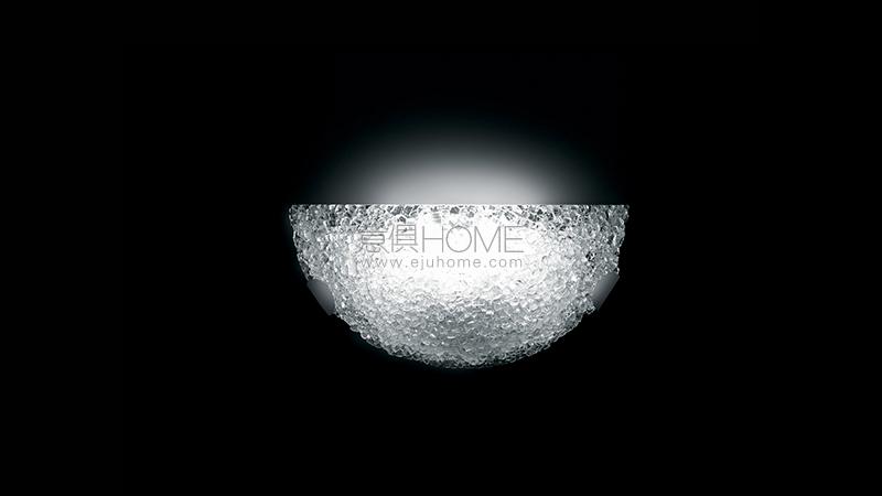 Wall and ceiling lamps in extra clear craquelé glass. White lacquered metal supports. LED lighting. (6W E27 110-240V 2700/3000K)