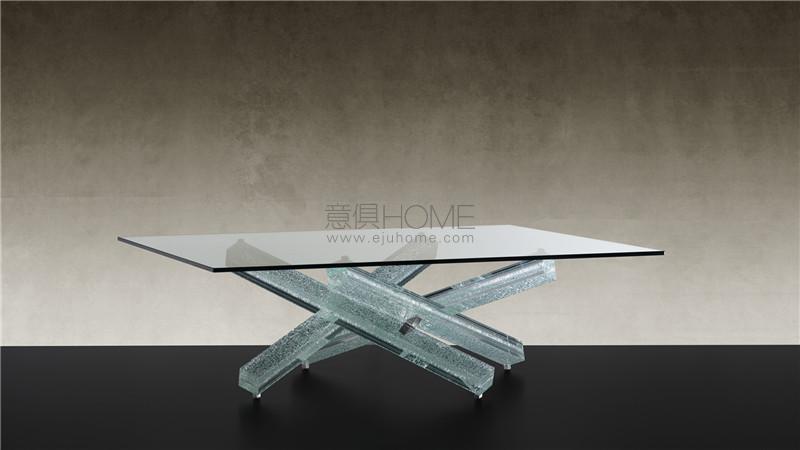 Coffee table with base in extraclear crackled glass. Glass top 12 mm thick.