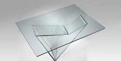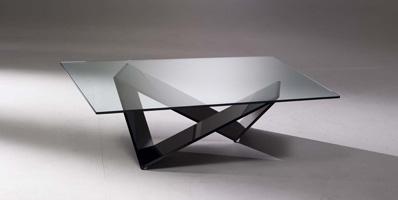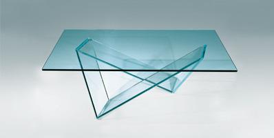 Coffee table with base in extraclear transparent or lacquered or etched lacquered glass.Glass top 12 mm thick.