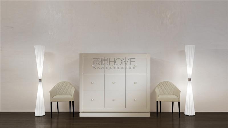Bar cabinet with a folding door and 2 or 3 doors. Structure available in shiny lacquered finish with applications of bevelled lacquered glass or in shiny ebony wood. Doors with application of bevelled lacquered glass, of glass with London engravings or of Marble-glass. LED lighting under the top. Interior back in mirror glass. Optional Murano glass or crystal handles and internal LED lighting.
