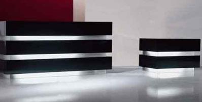 Chest of drawers in wood with dividing parts in extra clear etched and tempered glass with internal LED lighting or in satin Brass (104M) finish. Structure with 2 or 3 drawers available in shiny lacquered, Canaletto Walnut or in shiny Ebony. Top in lacquered glass for lacquered version. Optional top shelf in extra clear glass 10mm th. and additional drawers.