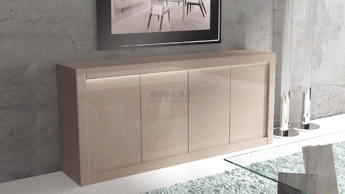 Sideboard with LED lighting under the top. Structure in shiny lacquered wood with application of bevelled lacquered glass or in shiny ebony wood. Doors covered in lacquered glass, Antique mirror or Marble glass. Push-pull opening or optional crystal or Murano glass handles.